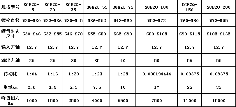 扭力倍增器說(shuō)明:???在工業(yè)設(shè)備安裝或檢修時(shí),緊固和拆卸大規(guī)格螺帽非常困難,尤其在操作者難以施力的環(huán)境中(如設(shè)備周?chē)臻g??;無(wú)法使用加力桿及各類(lèi)敲擊扳手或野外管路,鐵路無(wú)電源等情況下),這一難題更為突出,本公司科研人員經(jīng)過(guò)多年的設(shè)計(jì)研發(fā)生產(chǎn)國(guó)內(nèi)外最先進(jìn)的力矩放大扳手,解決這一大難題。